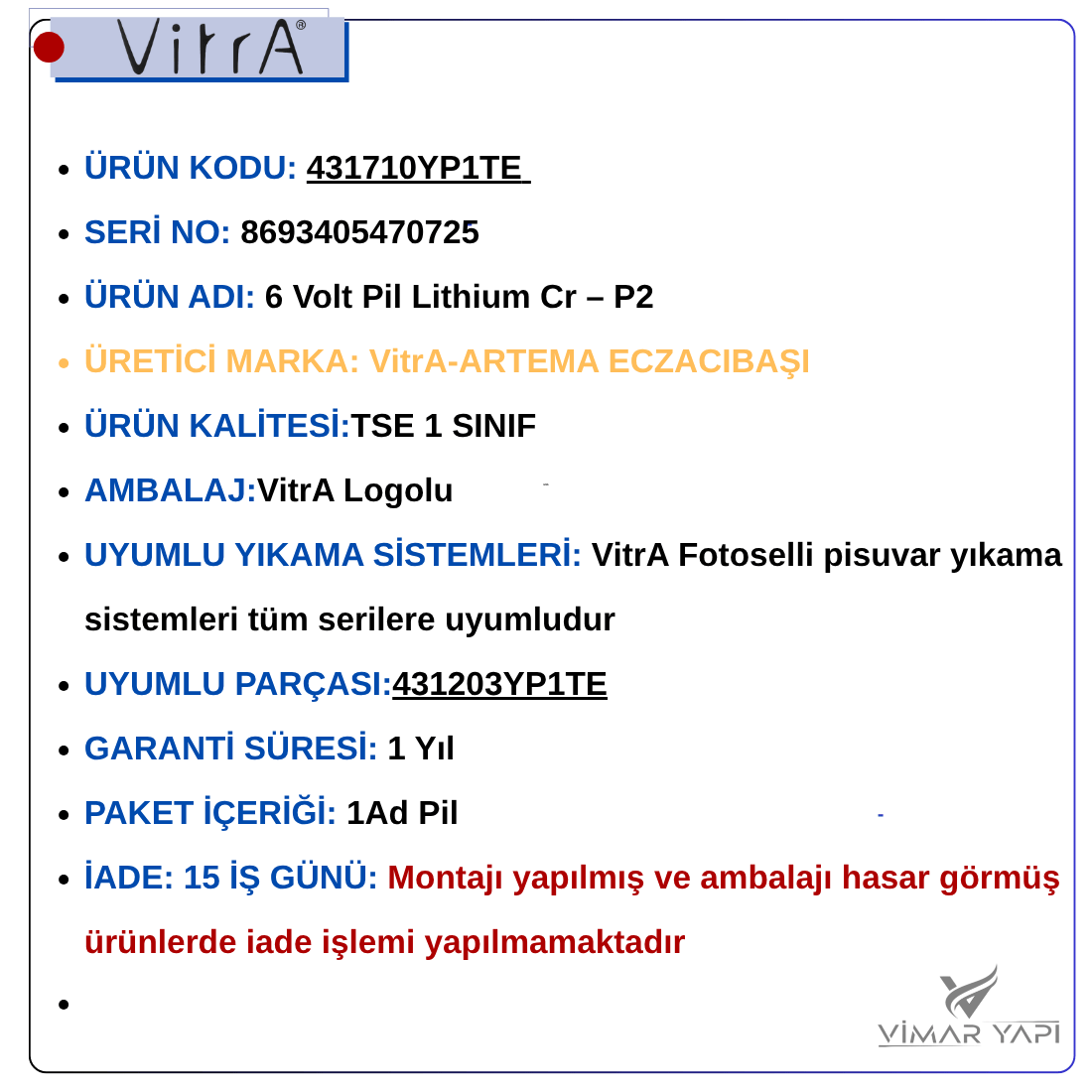 - AMBALAJ:VitrA Logolu