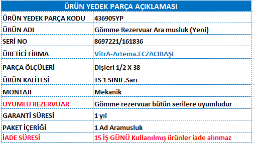 436905YP Gömme Rezervuar Ara musluk (Yeni)