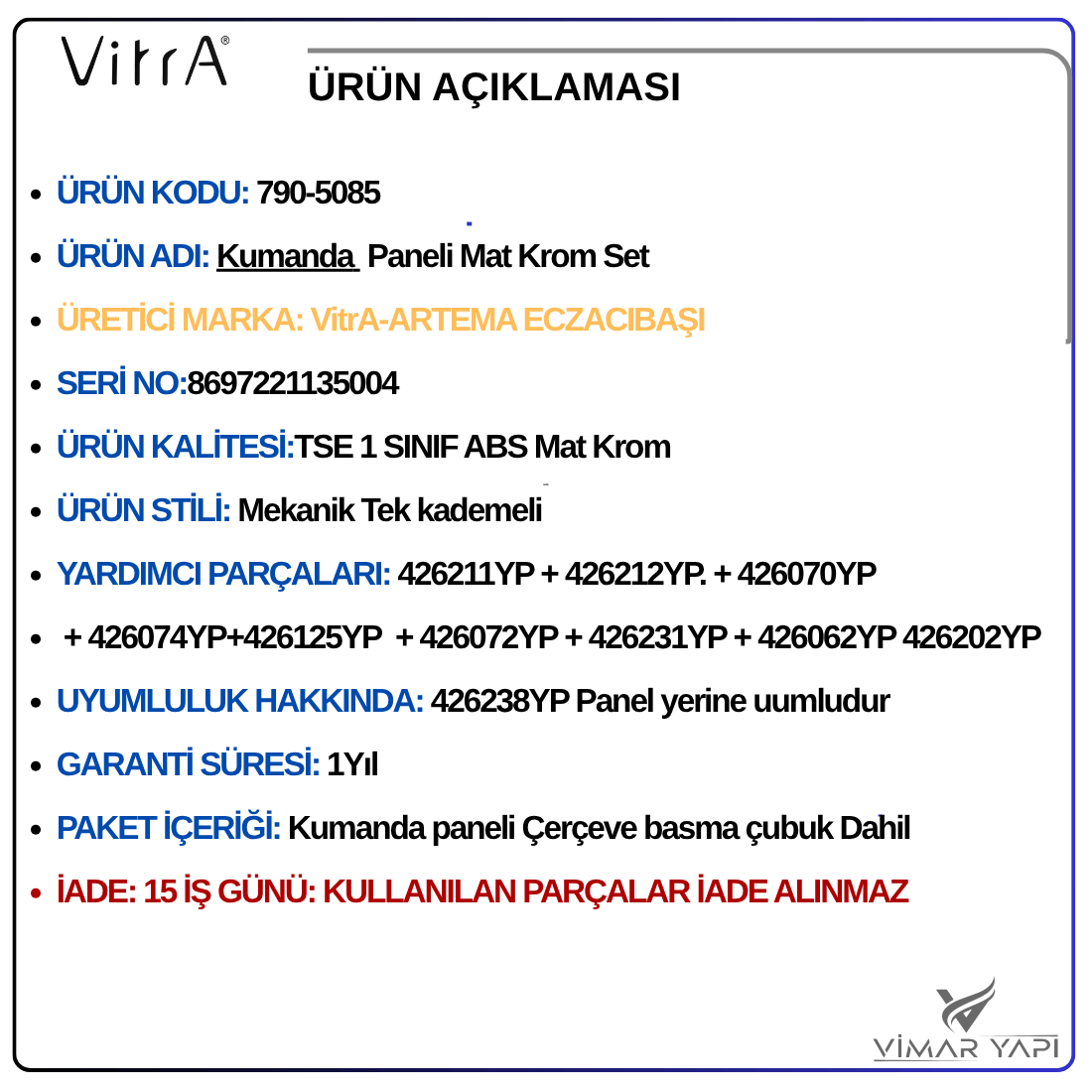 - ÜRÜN KODU: 790-5085