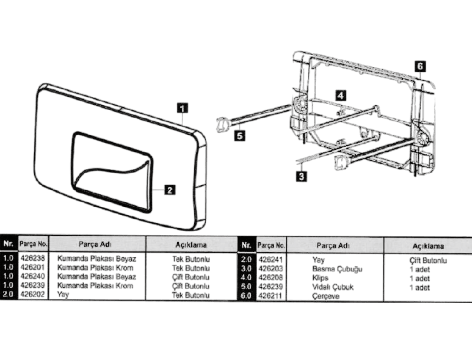 - PAKET İÇERİĞİ: Kumanda paneli Çerçeve basma çubuk Dahil