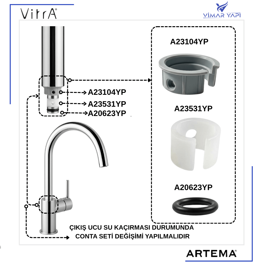 A20623YP O-Ring 2×8 +A23104YP Üst Yataklama Contası+A23531YP Conta
