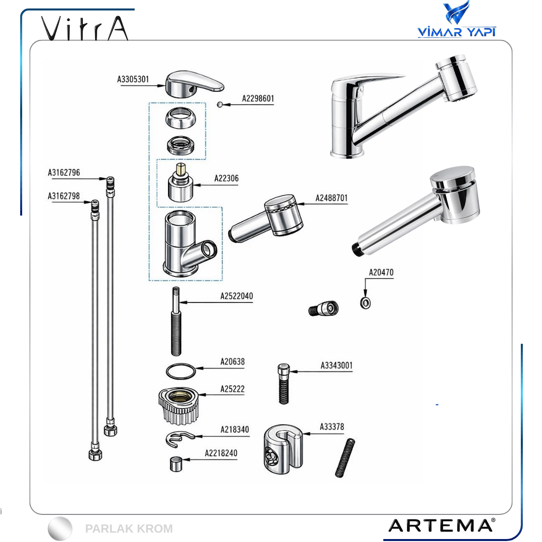 Kategoriler: Eviye Batarya Parçaları, Eviye Bataryası El Duşu Sistemleri, Vitra Artema El duşu
