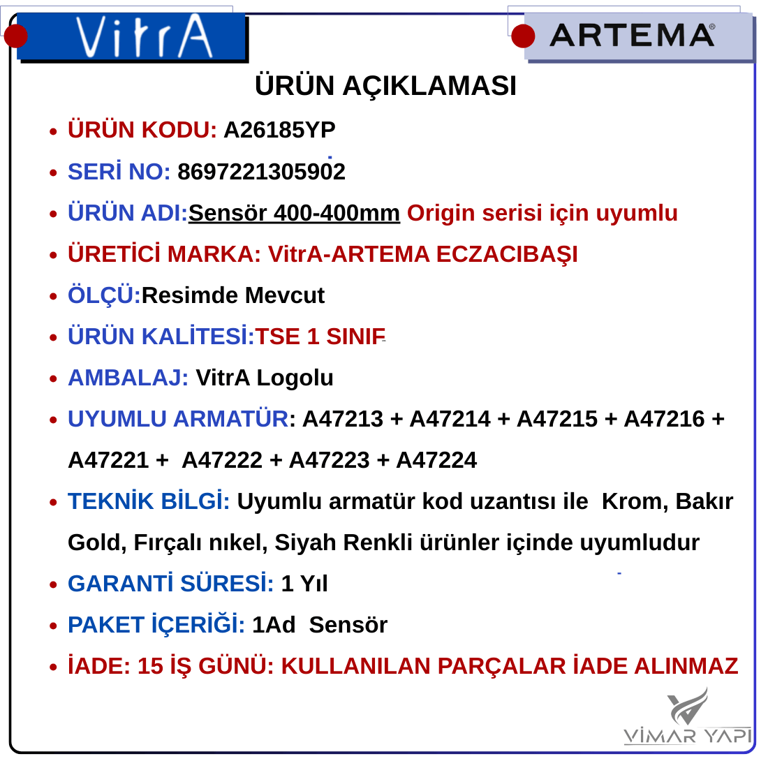 Kategoriler: Artema Sensör, VitrA Artema Sensör
