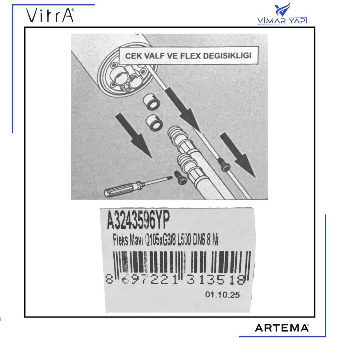 | ÜRÜN ADI: Fleks Mavi Q105xG3/8 L500 DN6 Ø8 Nipel |