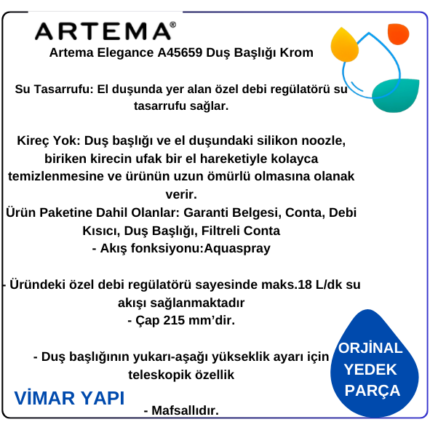 Kategoriler: Artema Duş Takımı, DUŞ ASKI SİSTEMLERİ, Vitra Artema El duşu
