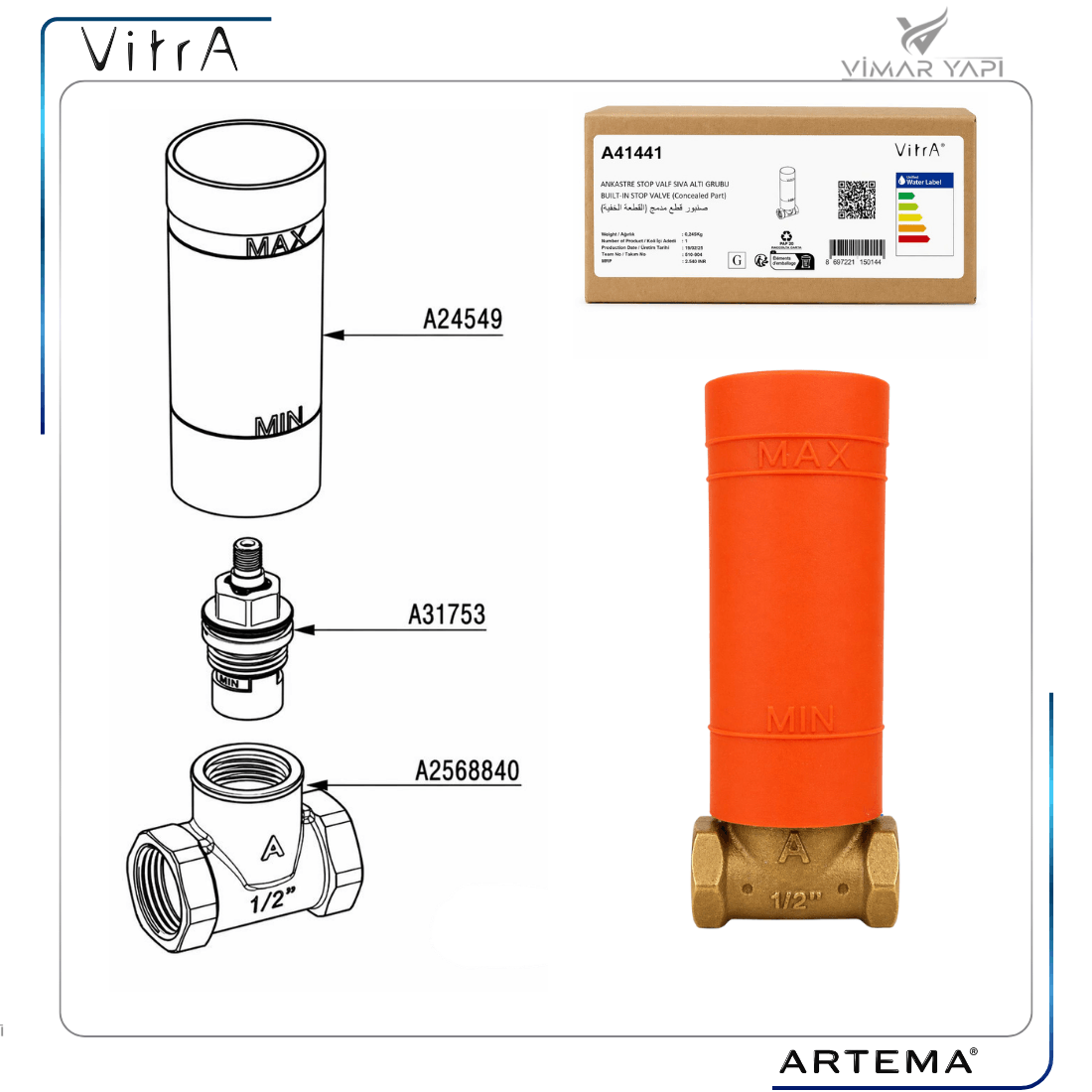 | ÜRÜN ADI: Ankastre Stop Valf (Sıva Altı Grubu) |
